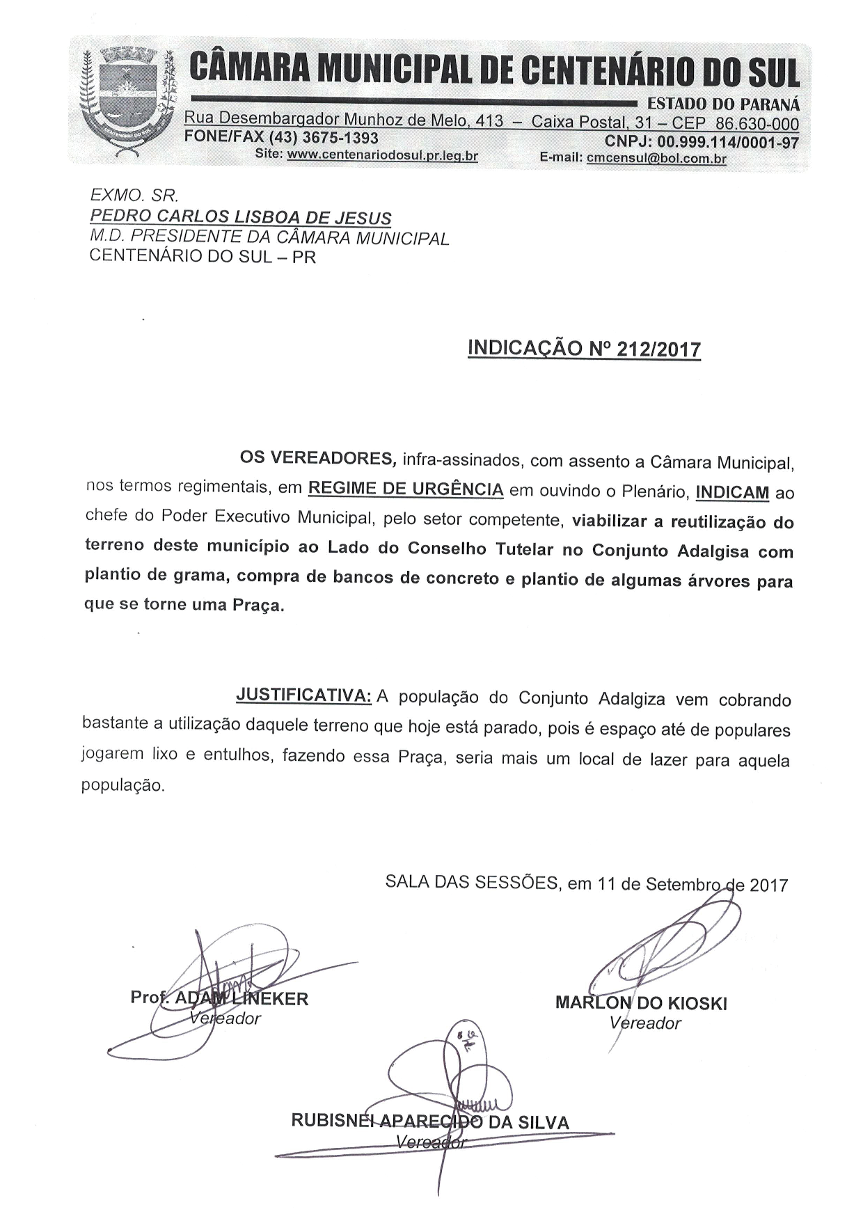 A população do Conjunto Adalgiza vem cobrando bastante a utilização daquele terreno que hoje está parado, pois é espaço até de populares jogarem lixo e entulhos, fazendo essa Praça, seria mais um local de lazer para aquela população.
