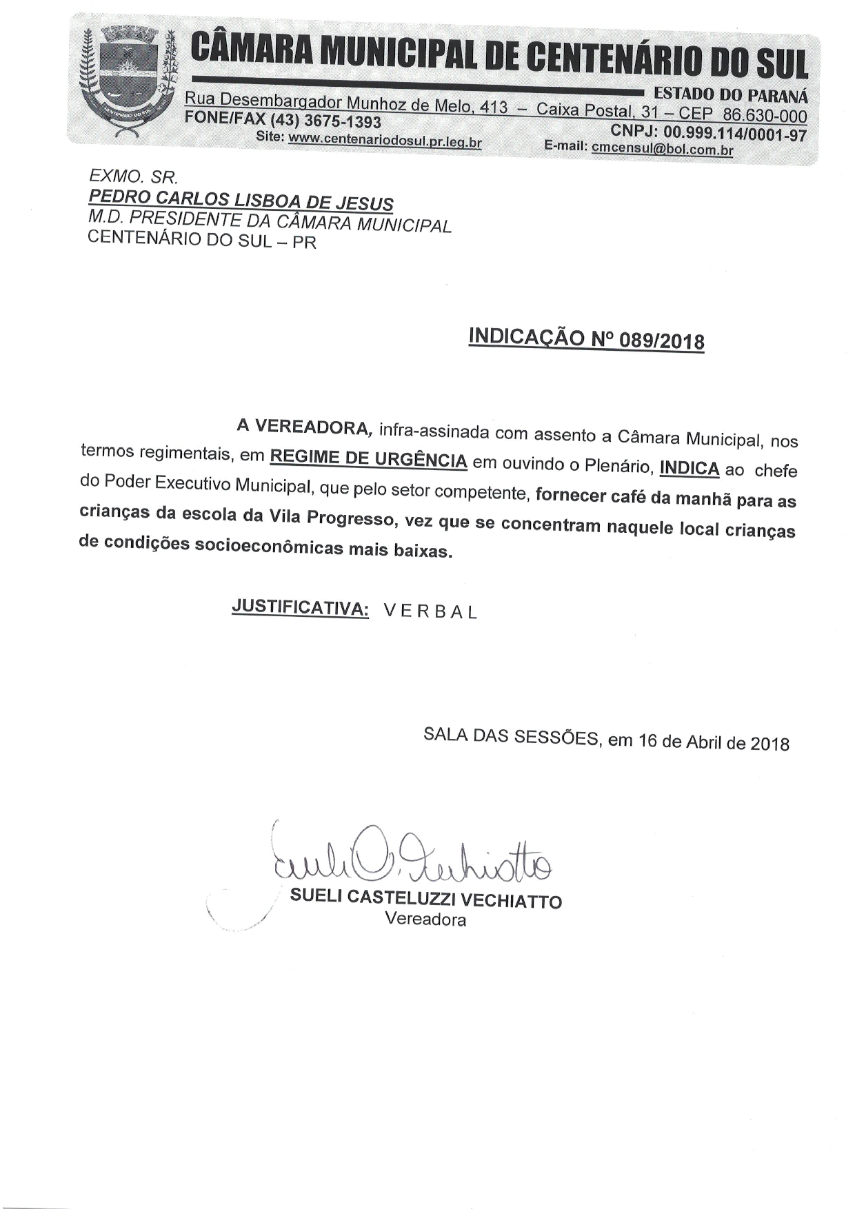 Ementa: FORNECER CAFÉ DA MANHÃ PARA AS CRIANÇAS DA ESCOLA DA VILA PROGRESSO, VEZ QUE SE CONCENTRAM NAQUELE LOCAL CRIANÇAS DE CONDIÇÕES SOCIOECONÔMICAS MAIS BAIXAS.