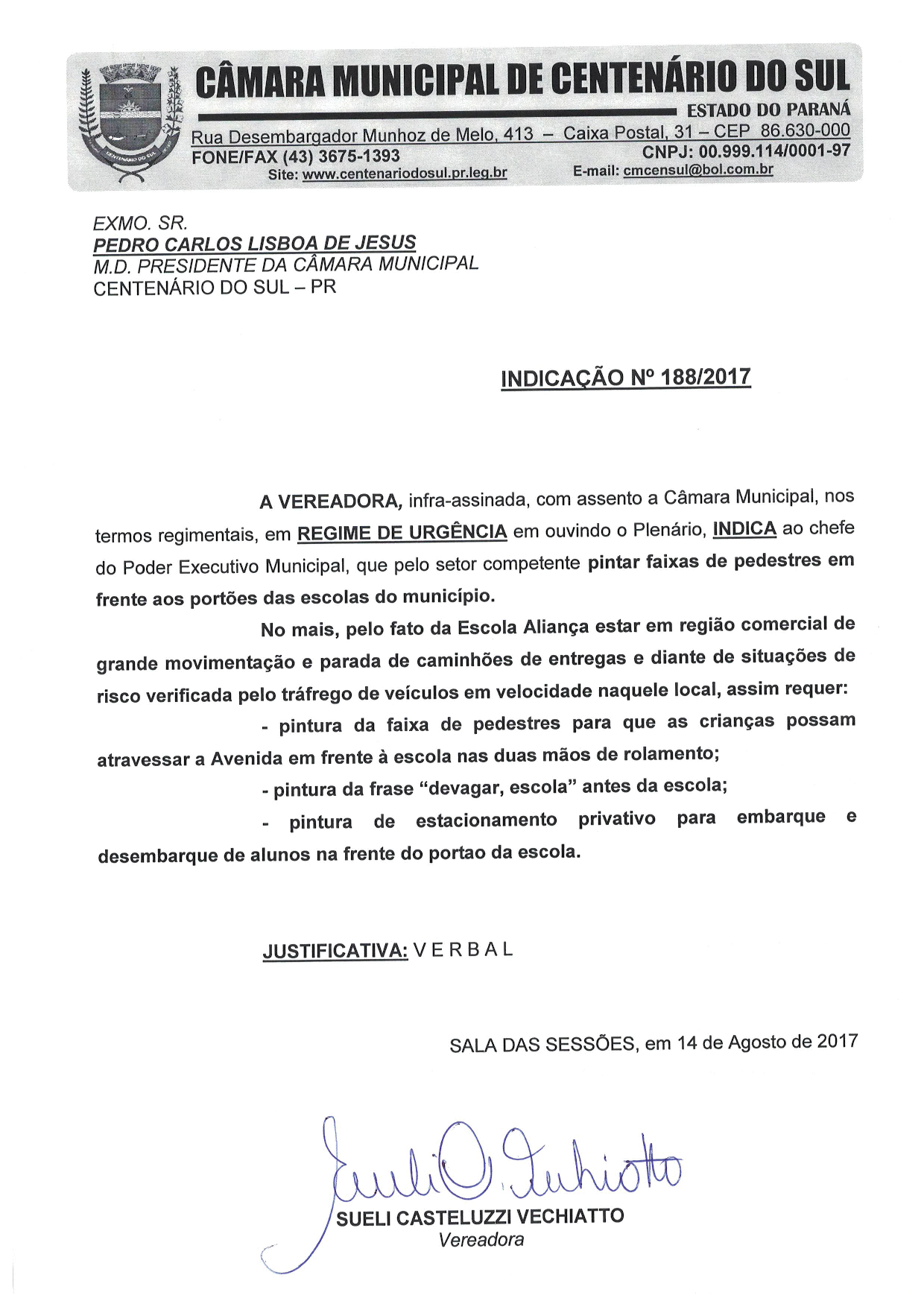 NO MAIS, PELO FATO DA ESCOLA ALIANÇA ESTAR EM REGIÃO COMERCIAL DE GRANDE MOVIMENTAÇÃO E PARADA DE CAMINHÕES DE ENTREGAS E DIANTE DE SITUAÇÕES DE RISCO VERIFICADA PELO TRÁFREGO DE VEÍCULOS EM VELOCIDADE NAQUELE LOCAL, ASSIM REQUER: - PINTURA DA FAIXA DE PEDESTRES PARA QUE AS CRIANÇAS POSSAM ATRAVESSAR A AVENIDA EM FRENTE À ESCOLA NAS DUAS MÃOS DE ROLAMENTO; - PINTURA DA FRASE “DEVAGAR, ESCOLA” ANTES DA ESCOLA; - PINTURA DE ESTACIONAMENTO PRIVATIVO PARA EMBARQUE E DESEMBARQUE DE ALUNOS NA FRENTE DO PORTAO DA ESCOLA. |