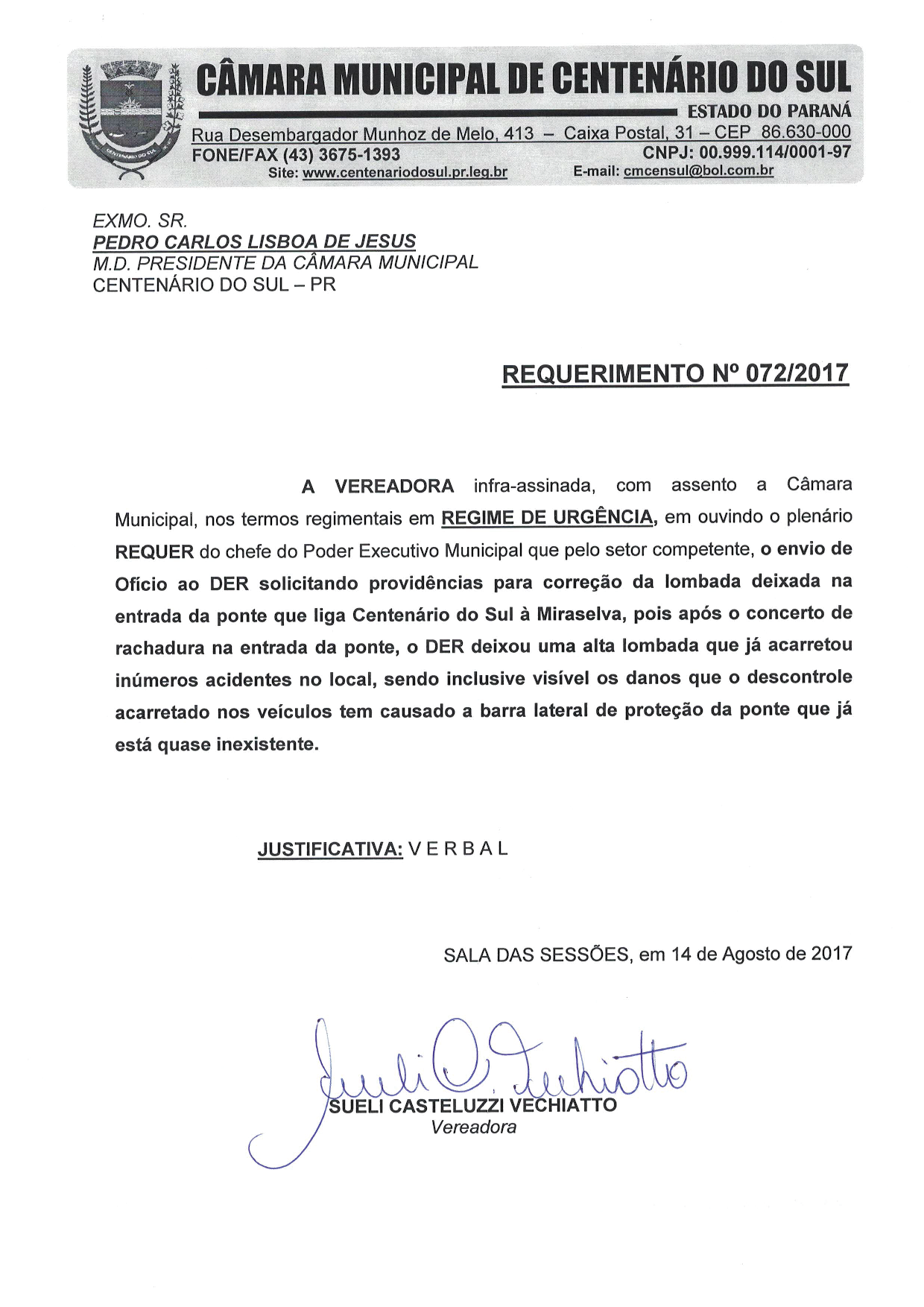 O ENVIO DE OFÍCIO AO DER SOLICITANDO PROVIDÊNCIAS PARA CORREÇÃO DA LOMBADA DEIXADA NA ENTRADA DA PONTE QUE LIGA CENTENÁRIO DO SUL À MIRASELVA, POIS APÓS O CONCERTO DE RACHADURA NA ENTRADA DA PONTE, O DER DEIXOU UMA ALTA LOMBADA QUE JÁ ACARRETOU INÚMEROS ACIDENTES NO LOCAL, SENDO INCLUSIVE VISÍVEL OS DANOS QUE O DESCONTROLE ACARRETADO NOS VEÍCULOS TEM CAUSADO A BARRA LATERAL DE PROTEÇÃO DA PONTE QUE JÁ ESTÁ QUASE INEXISTENTE. - - O ENVIO DE OFÍCIO AO DER SOLICITANDO PROVIDÊNCIAS PARA CORREÇÃO DA LOMBADA DEIXADA NA ENTRADA DA PONTE QUE LIGA CENTENÁRIO DO SUL À MIRASELVA, POIS APÓS O CONCERTO DE RACHADURA NA ENTRADA DA PONTE, O DER DEIXOU UMA ALTA LOMBADA QUE JÁ ACARRETOU INÚMEROS ACIDENTES NO LOCAL, SENDO INCLUSIVE VISÍVEL OS DANOS QUE O DESCONTROLE ACARRETADO NOS VEÍCULOS TEM CAUSADO A BARRA LATERAL DE PROTEÇÃO DA PONTE QUE JÁ ESTÁ QUASE INEXISTENTE.