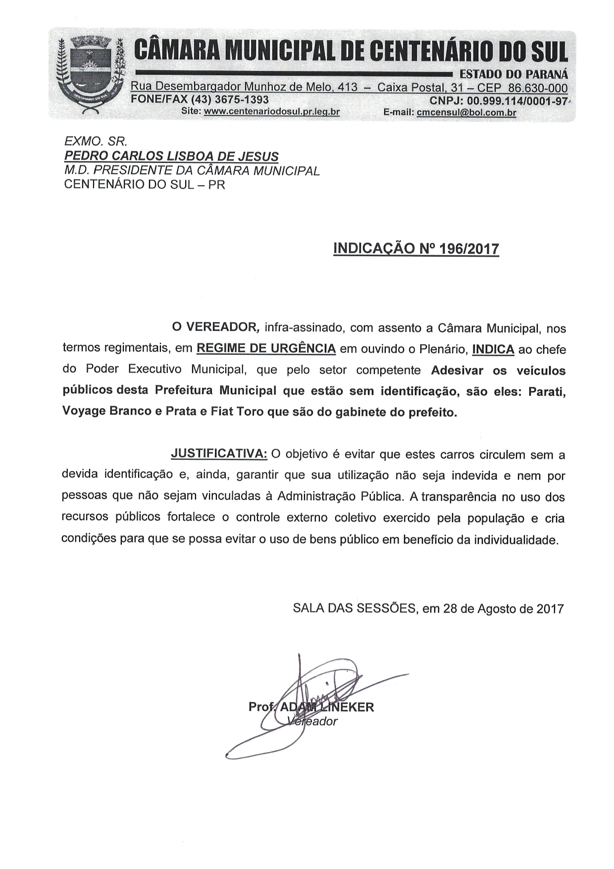 Indicação nº 196 de 2017