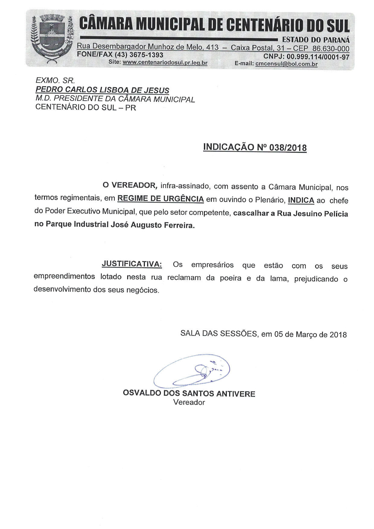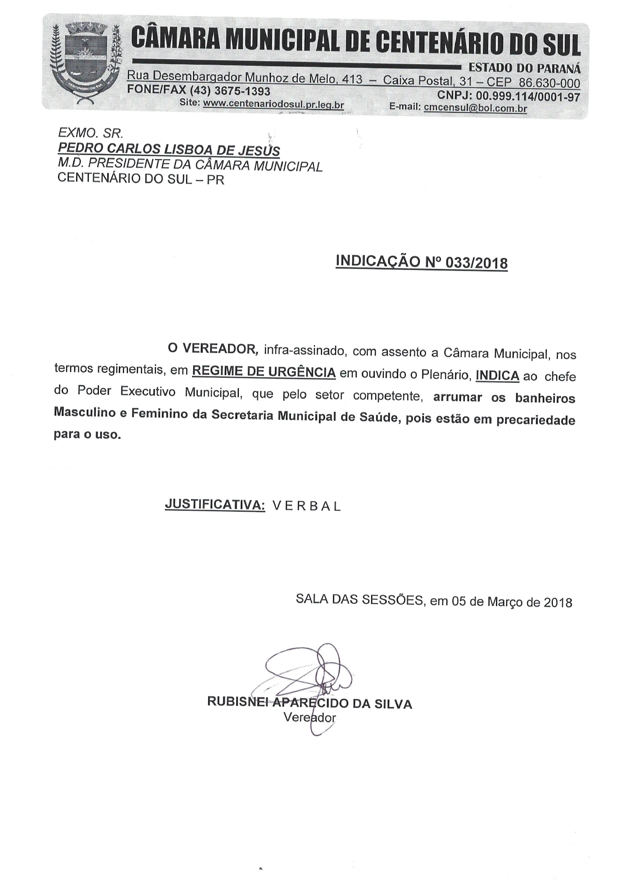 Indicação nº 34 de 2018