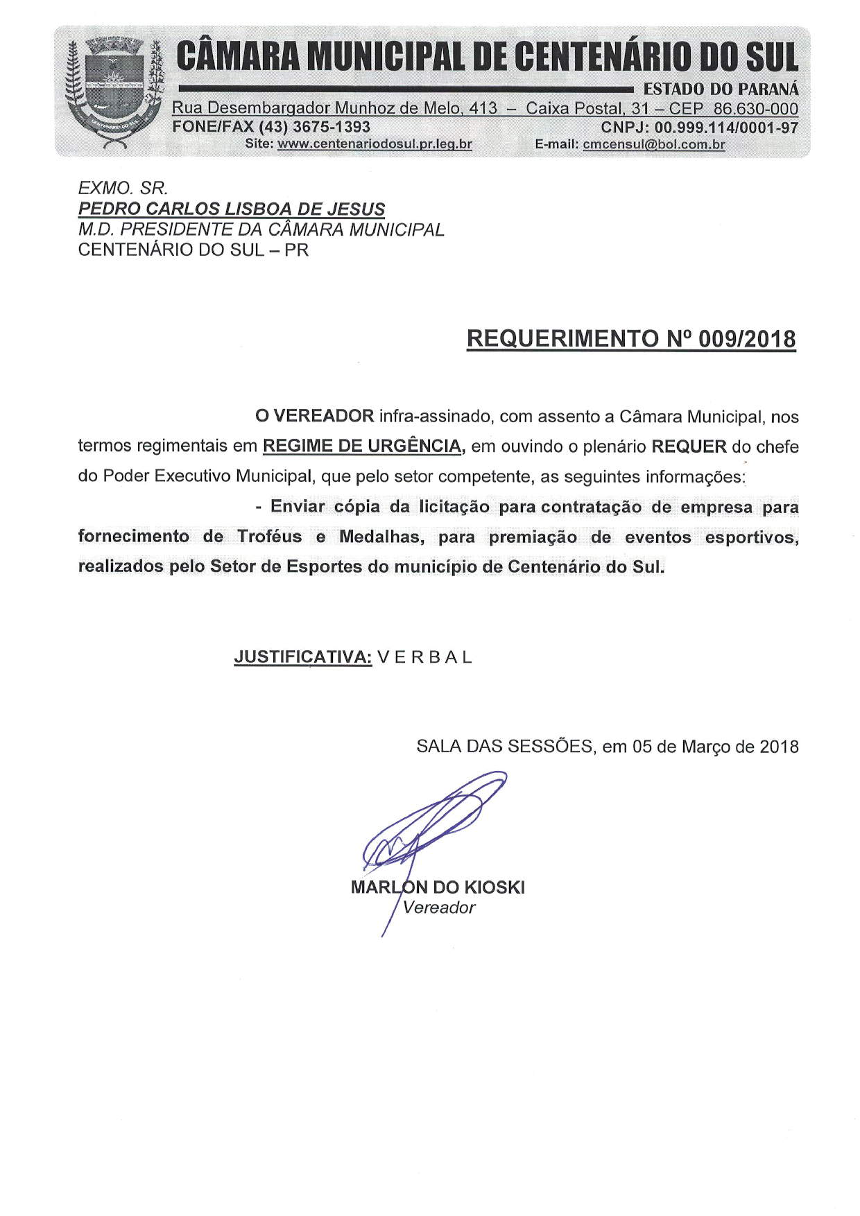 ENVIAR CÓPIA DA LICITAÇÃO PARA CONTRATAÇÃO DE EMPRESA PARA FORNECIMENTO DE TROFÉUS E MEDALHAS, PARA PREMIAÇÃO DE EVENTOS ESPORTIVOS, REALIZADOS PELO SETOR DE ESPORTES DO MUNICÍPIO DE CENTENÁRIO DO SUL. - - ENVIAR CÓPIA DA LICITAÇÃO PARA CONTRATAÇÃO DE EMPRESA PARA FORNECIMENTO DE TROFÉUS E MEDALHAS, PARA PREMIAÇÃO DE EVENTOS ESPORTIVOS, REALIZADOS PELO SETOR DE ESPORTES DO MUNICÍPIO DE CENTENÁRIO DO SUL.