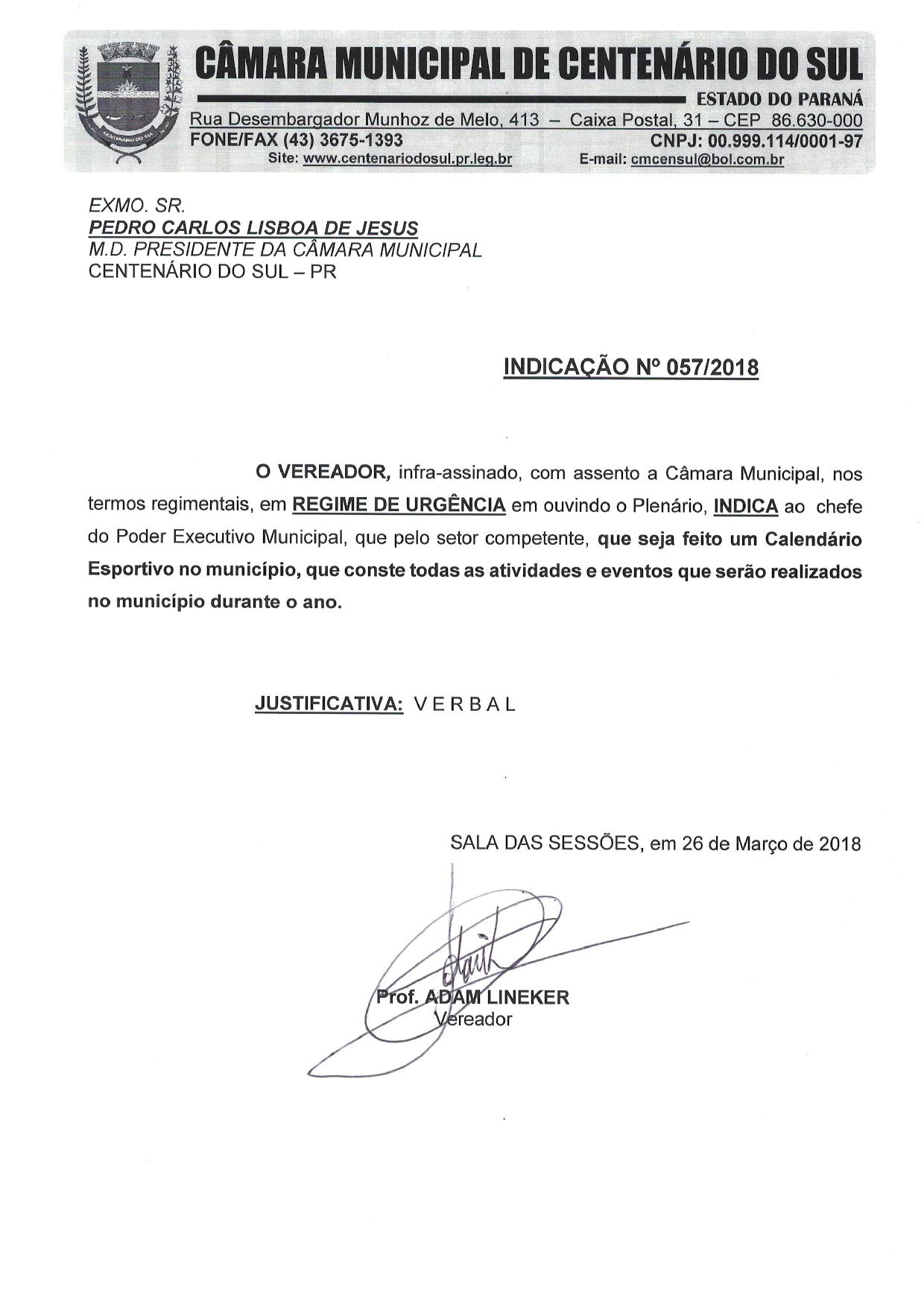 QUE SEJA FEITO UM CALENDÁRIO ESPORTIVO NO MUNICÍPIO, QUE CONSTE TODAS AS ATIVIDADES E EVENTOS QUE SERÃO REALIZADOS NO MUNICÍPIO DURANTE O ANO. - - QUE SEJA FEITO UM CALENDÁRIO ESPORTIVO NO MUNICÍPIO, QUE CONSTE TODAS AS ATIVIDADES E EVENTOS QUE SERÃO REALIZADOS NO MUNICÍPIO DURANTE O ANO.