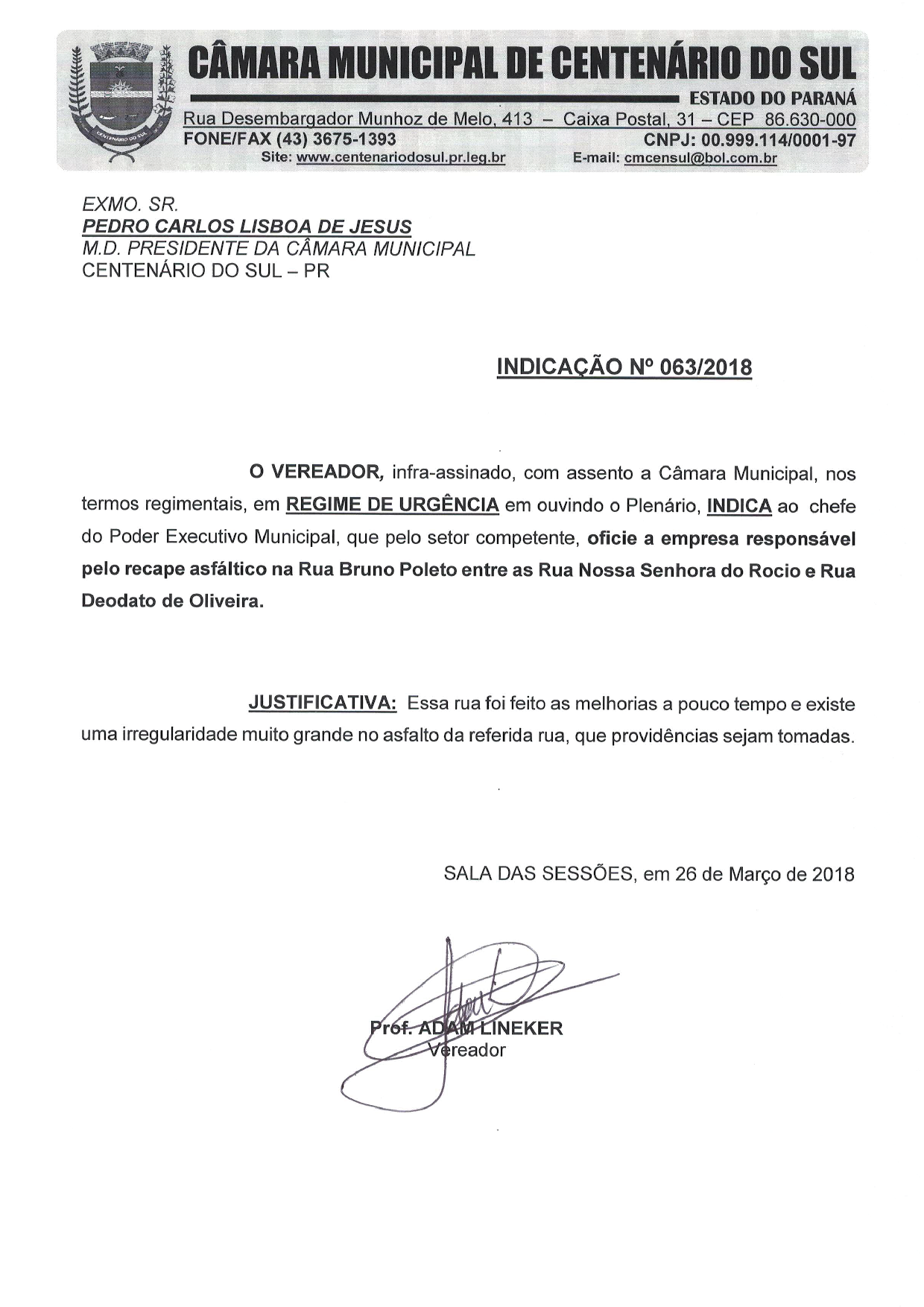 OFICIE A EMPRESA RESPONSÁVEL PELO RECAPE ASFÁLTICO NA RUA BRUNO POLETO ENTRE AS RUA NOSSA SENHORA DO ROCIO E RUA DEODATO DE OLIVEIRA. - - OFICIE A EMPRESA RESPONSÁVEL PELO RECAPE ASFÁLTICO NA RUA BRUNO POLETO ENTRE AS RUA NOSSA SENHORA DO ROCIO E RUA DEODATO DE OLIVEIRA.