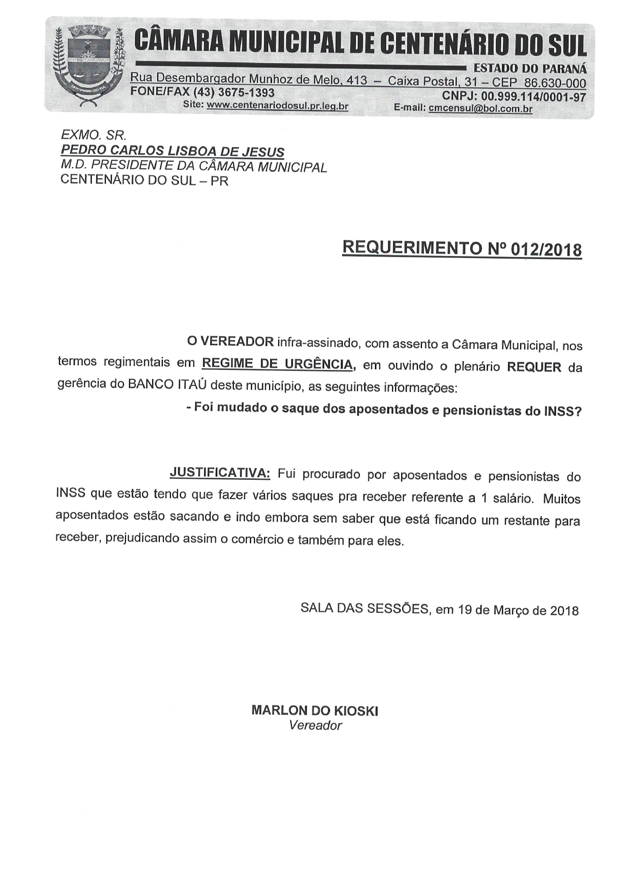 QUE SEJA IMPLANTADO O SISTEMA DE GRAVAÇÃO, EM ÁUDIO E VÍDEO, BEM COMO A TRANSMISSÃO AO VIVO POR MEIO DA INTERNET, DOS PROCESSOS LICITATÓRIOS REALIZADOS PELA PREFEITURA MUNICIPAL DE CENTENÁRIO DO SUL. - - QUE SEJA IMPLANTADO O SISTEMA DE GRAVAÇÃO, EM ÁUDIO E VÍDEO, BEM COMO A TRANSMISSÃO AO VIVO POR MEIO DA INTERNET, DOS PROCESSOS LICITATÓRIOS REALIZADOS PELA PREFEITURA MUNICIPAL DE CENTENÁRIO DO SUL.