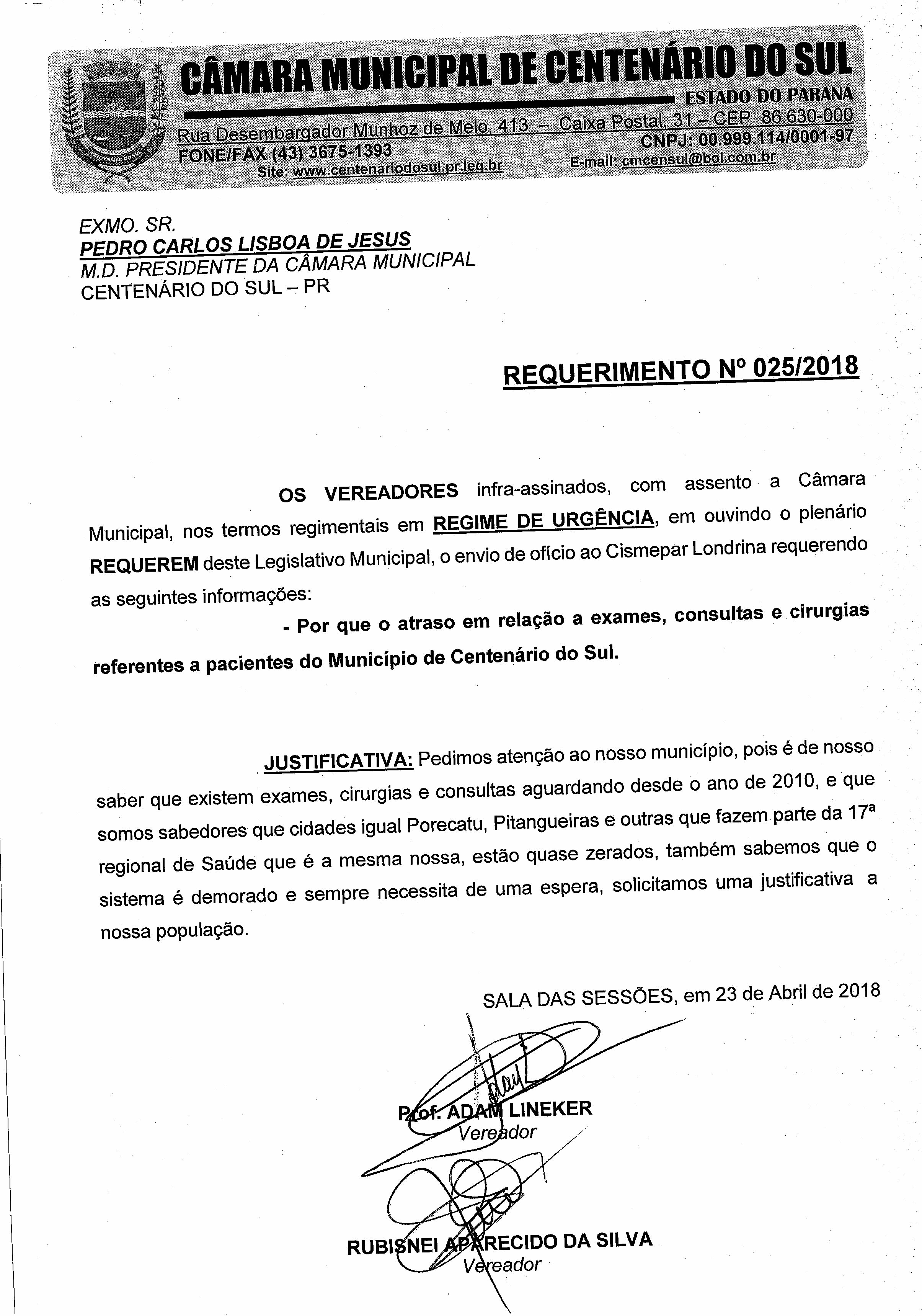 POR QUE O ATRASO EM RELAÇÃO A EXAMES, CONSULTAS E CIRURGIAS REFERENTES A PACIENTES DO MUNICÍPIO DE CENTENÁRIO DO SUL. - - POR QUE O ATRASO EM RELAÇÃO A EXAMES, CONSULTAS E CIRURGIAS REFERENTES A PACIENTES DO MUNICÍPIO DE CENTENÁRIO DO SUL.