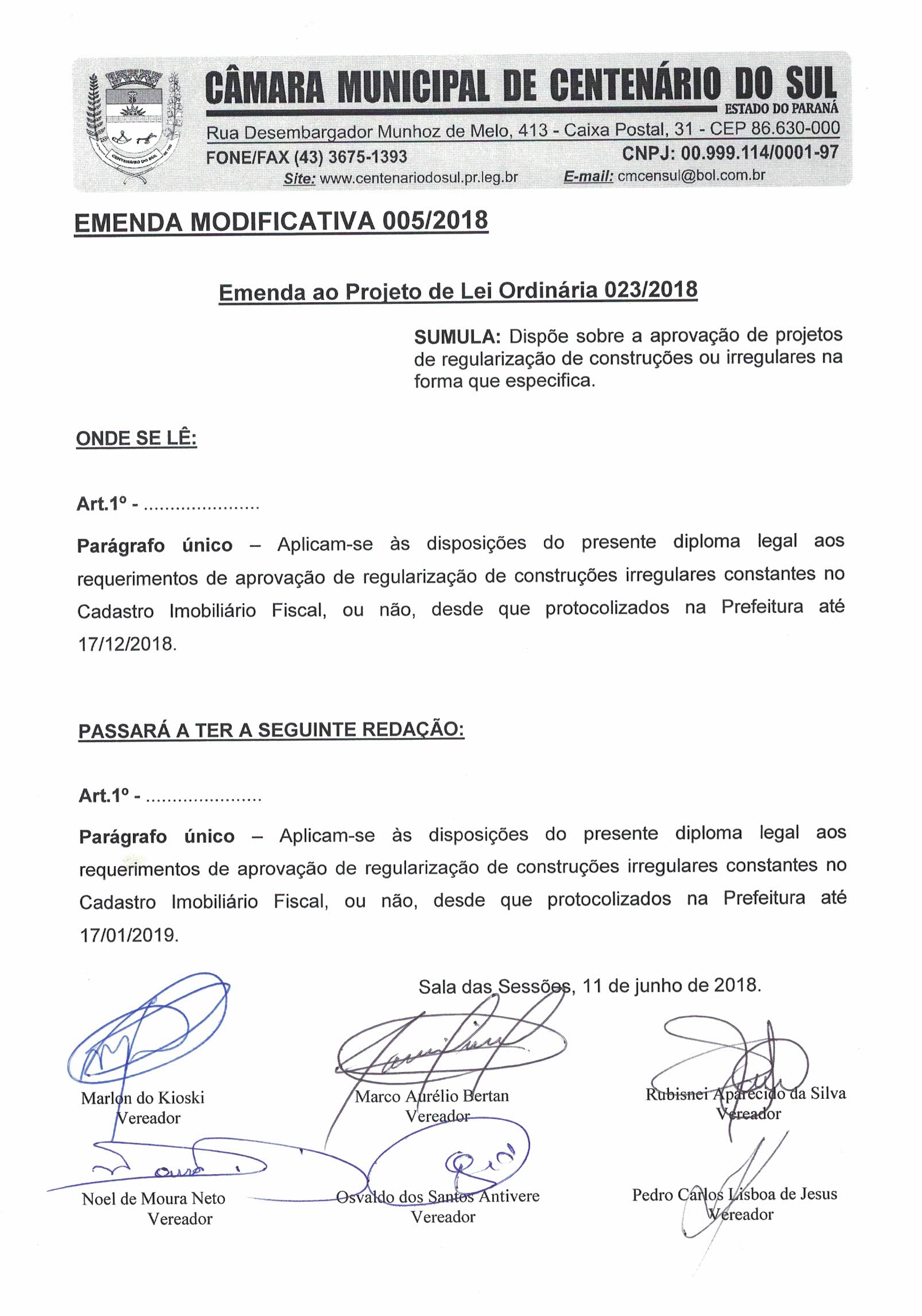 Emenda Modificativa nº 5 de 2018